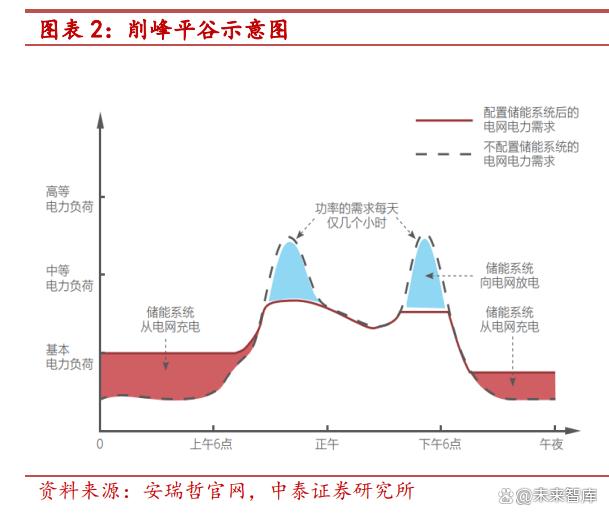 工商儲(chǔ)使用鋰電池等電化學(xué)儲(chǔ)能技術(shù),主要用于削峰平谷。儲(chǔ)能按設(shè) 備或項(xiàng)目接入位置可分為電源側(cè)、電網(wǎng)側(cè)及用戶(hù)側(cè)。工商業(yè)儲(chǔ)能是分布 式儲(chǔ)能系統(tǒng)在用戶(hù)側(cè)的典型應(yīng)用,其特點(diǎn)是距離分布式光伏電源端以及 負(fù)荷中心均較近,可有效提升清潔能源的消納率,減少電能的傳輸?shù)膿p 耗,適用于商業(yè)樓宇、工業(yè)園區(qū)等用電大戶(hù)。工商業(yè)儲(chǔ)能系統(tǒng)的主要目 的是“削峰平谷”,優(yōu)化電力資源配置和合理使用,并利用電網(wǎng)峰谷差 價(jià)實(shí)現(xiàn)套利。
