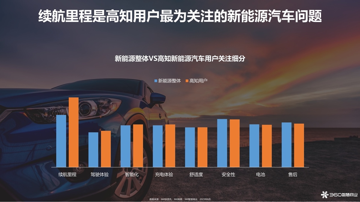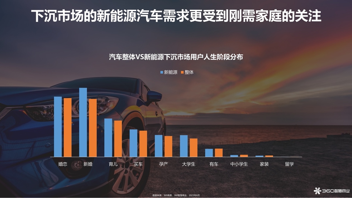 近日,油價(jià)迎來新一輪上調(diào),新能源汽車低成本用車的優(yōu)勢得以凸顯,而隨著7月31日發(fā)改委發(fā)布的《關(guān)于恢復(fù)和擴(kuò)大消費(fèi)的措施》明確提出“擴(kuò)大新能源汽車消費(fèi)”、支持新能源汽車下鄉(xiāng)等舉措,新能源汽車大眾化趨勢也更加顯著。隨著市場環(huán)境修復(fù)和重振,卯足馬力行至2023年下半場,新能源汽車行業(yè)展現(xiàn)出哪些增長新姿態(tài)?近日,360智慧商業(yè)聯(lián)合360汽車頻道發(fā)布了《2023年新能源汽車行業(yè)洞察》報(bào)告(以下簡稱“報(bào)告”),針對新能源汽車行業(yè)發(fā)展趨勢、消費(fèi)者行為等維度進(jìn)行深入洞察。