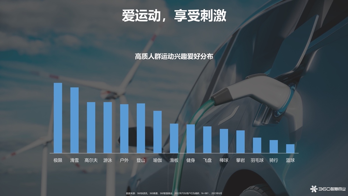 新能源汽車高質(zhì)消費(fèi)群體可接受的購車價(jià)格較高,追求品質(zhì)的他們往往有著極限運(yùn)動、滑雪、高爾夫等“燒錢”的愛好。