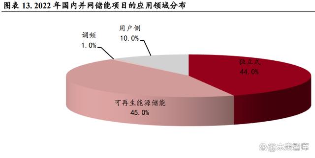 我國作為世界第一大儲能市場,應用場景主要集中在發(fā)電側(cè)和電網(wǎng)側(cè)。從 2022 年已并網(wǎng)項目的應用 領域來看,可再生能源儲能項目和獨立式儲能項目貢獻了絕大多數(shù)增量,分別占比達 45%和 44%, 用戶側(cè)儲能項目僅占比 10%,但其中還包括 3 個 10 小時鉛炭儲能項目。