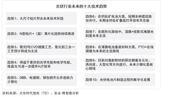 在歷經(jīng)光伏行業(yè)洗牌以及歐美聯(lián)手限制后,中國光伏產(chǎn)業(yè)從拼規(guī)模、拼價(jià)格轉(zhuǎn)向拼質(zhì)量、拼效益,回歸技術(shù)本源。安永基于大東時(shí)代對(duì)光伏領(lǐng)先企業(yè)技術(shù)專家的訪談,結(jié)合行業(yè)沉淀與經(jīng)驗(yàn),總結(jié)了光伏行業(yè)未來的十大技術(shù)趨勢(shì)。