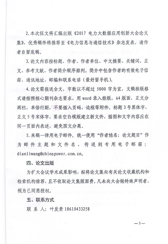 關(guān)于“2017電力大數(shù)據(jù)應(yīng)用創(chuàng)新大會(huì)”的征文通知