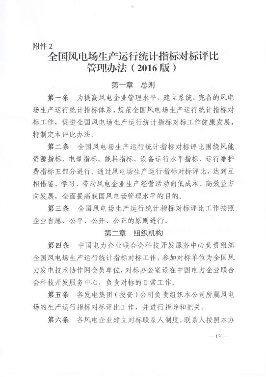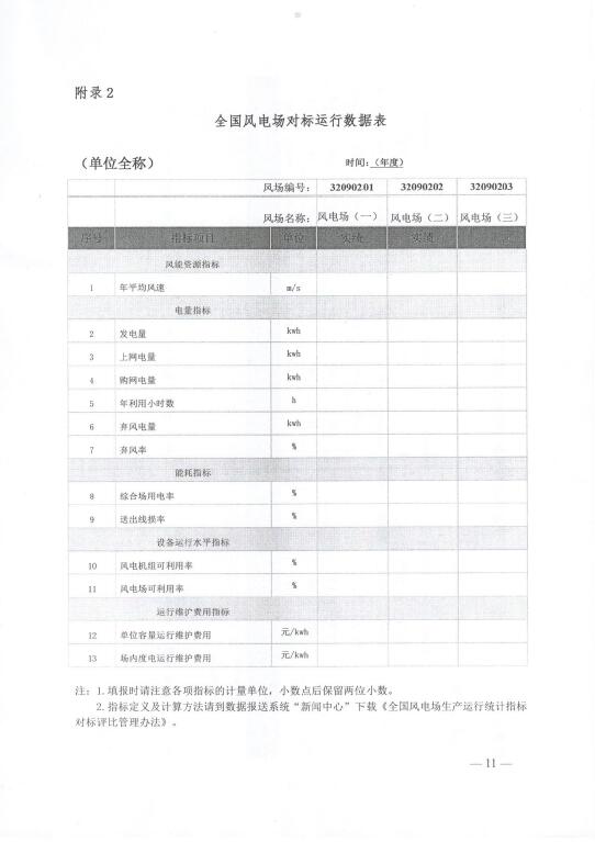 關(guān)于印發(fā)《風(fēng)電場(chǎng)生產(chǎn)運(yùn)行統(tǒng)計(jì)指標(biāo)體系》(2016版)、《全國(guó)風(fēng)電場(chǎng)生產(chǎn)運(yùn)行統(tǒng)計(jì)指標(biāo)對(duì)標(biāo)評(píng)比管理辦法》(2016版)的通知